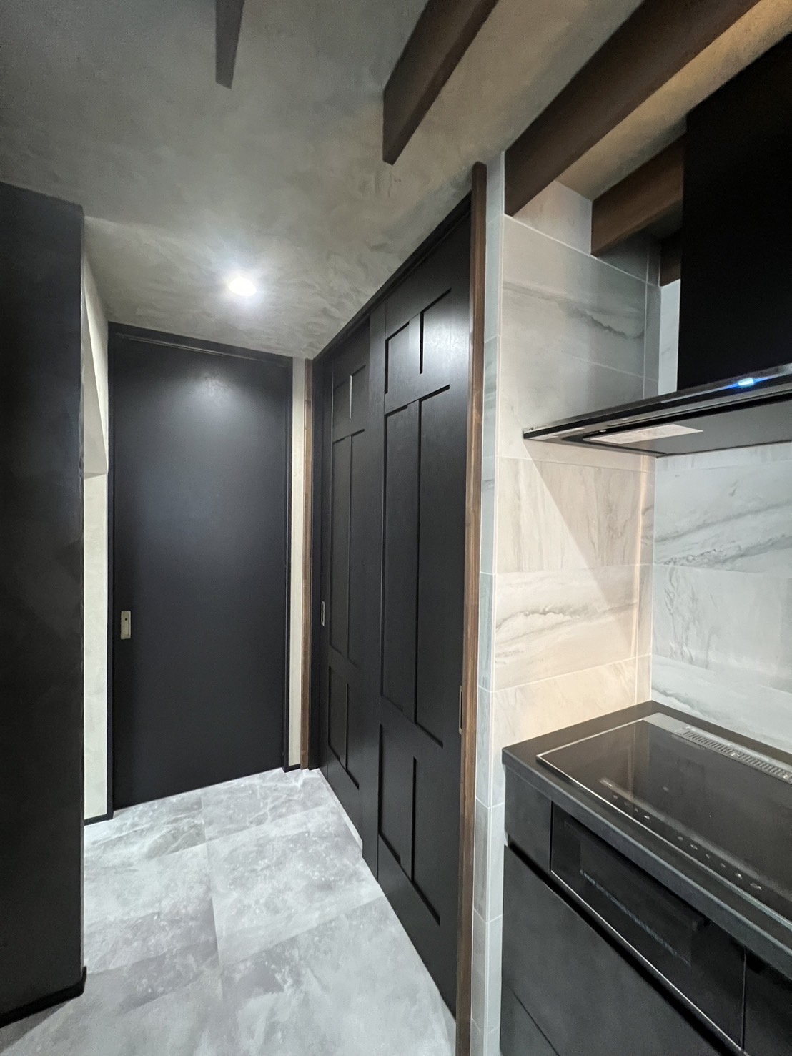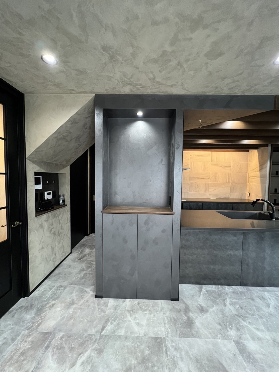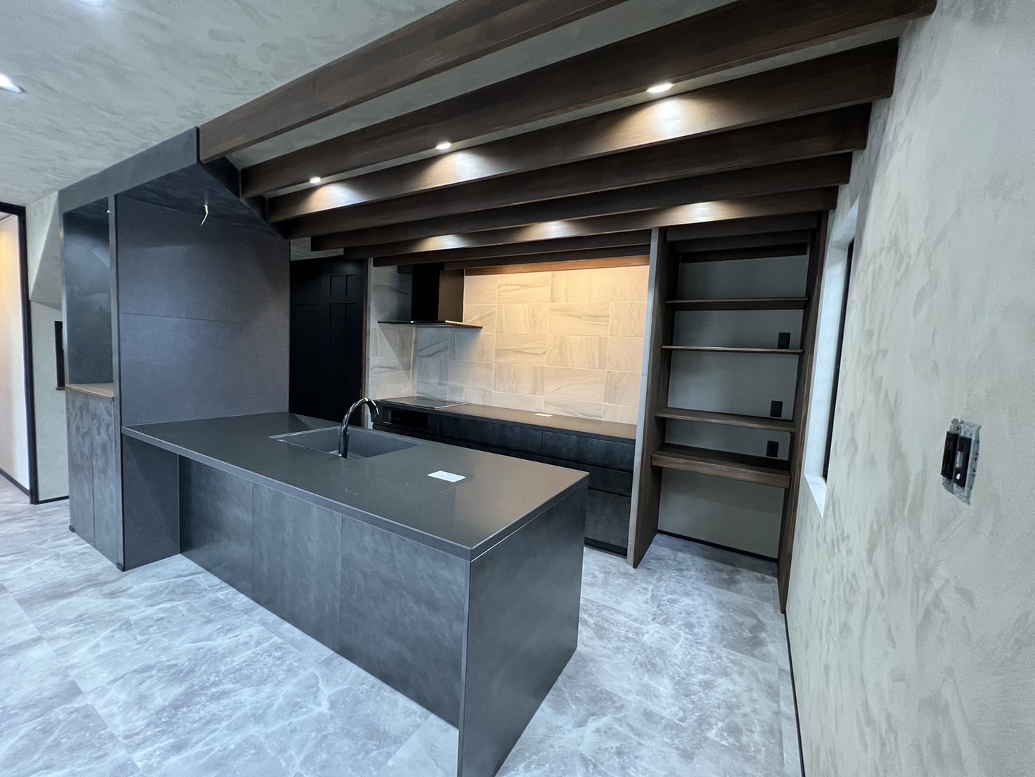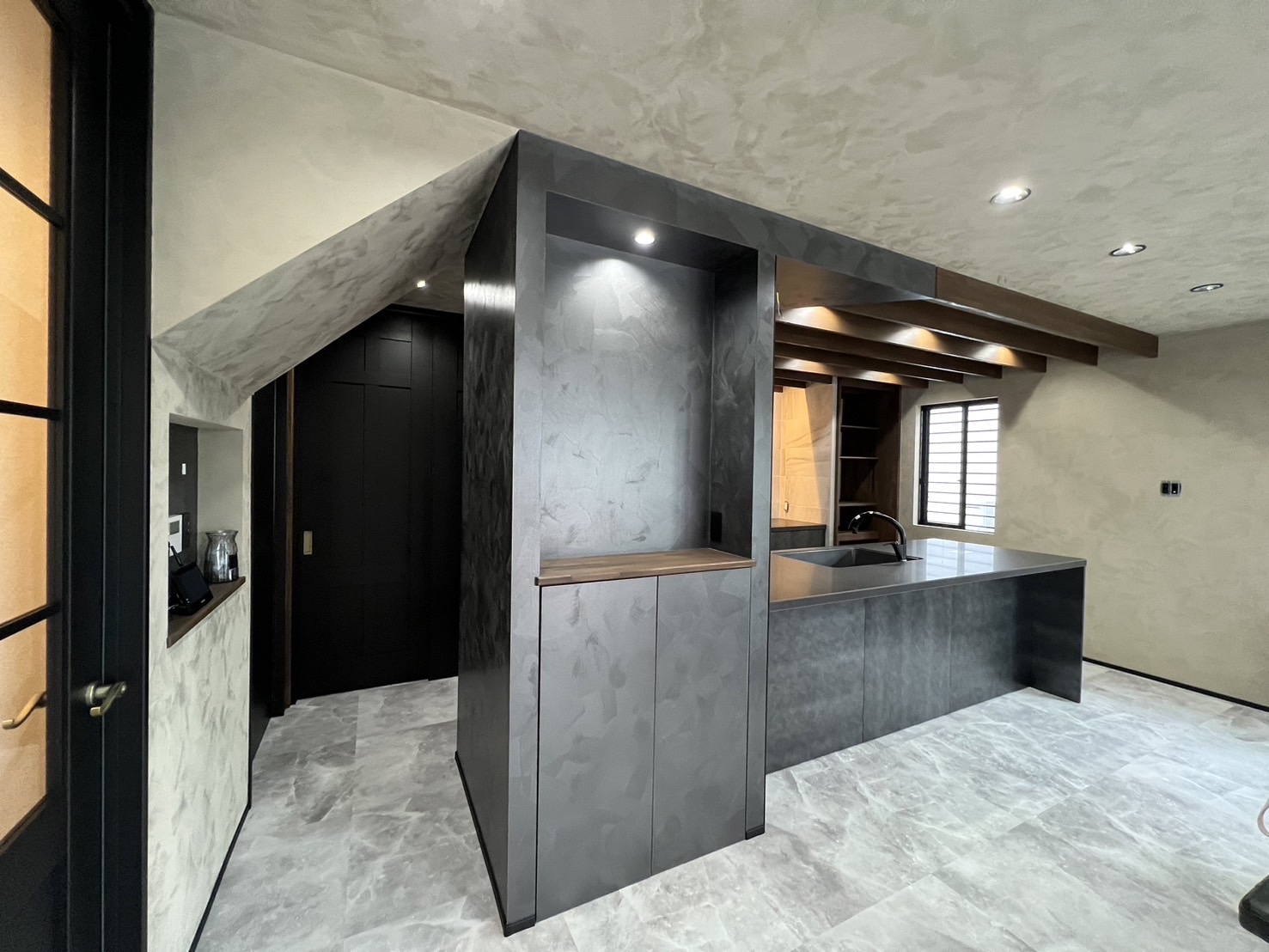 今回テーマが『暖かい家』なので、機能的にも新たに断熱材を入れ替え床暖房を設置し、見た目もベージュ×ブラック×こげ茶色でまとめ温かい雰囲気になりました。